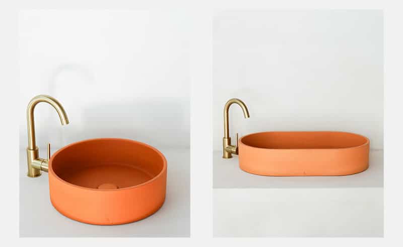 Notre production repose sur deux approches complémentaires. D’une part, nous proposons une gamme de vasques en 25 teintes minérales, pastel ou intenses. Les formes et les dimensions sont définies, mais la couleur est personnalisable. Chaque vasque est fabriquée sur commande. D’autre part, nous concevons des projets de A à Z avec nos clients, pour des pièces uniques et adaptées à leurs besoins.