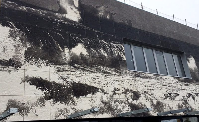 Le béton pictural est un béton tatoué grâce à une imprimante numérique. Noir & blanc ou couleurs, les encres pénètrent dans la masse du matériau et sont capables de résister à des conditions rigoureuses : pluie, froid, UV, pollution, chocs…