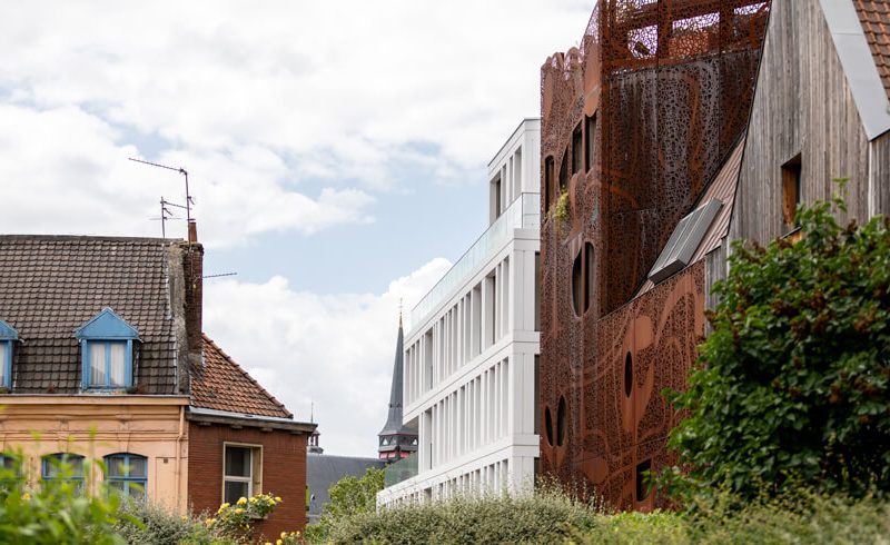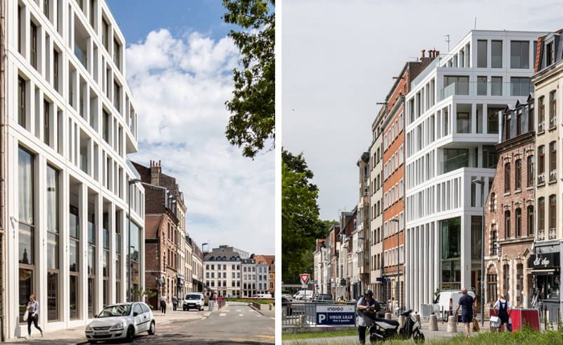 La branche promotion immobilière de ce groupe industriel a acquis en 2013 une bâtisse qu’il est possible de détruire au cœur du Vieux-Lille, une opportunité rare. L’agence Coldefy, réputée notamment pour la réalisation l’Institut du Design de Hong Kong, a été choisie pour concevoir un immeuble de six étages sur le terrain libéré. Charles-Henri Marquet le veut iconique, à même de marquer les esprits.
