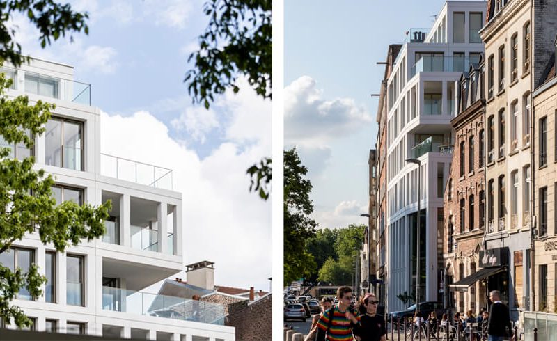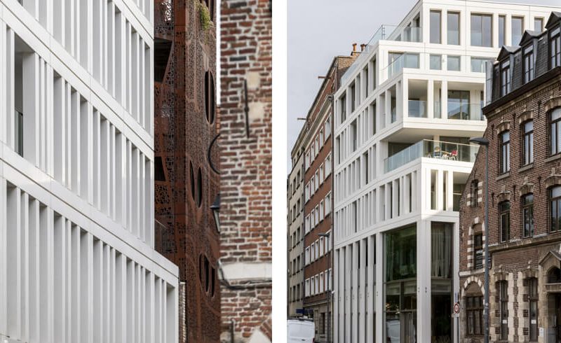 « Le Peuple Belge est flanqué sur sa gauche d’un R+6 existant datant des années 1950 et sur sa droite de maisons basses traditionnelles. D’où cette idée d’un volume en gradins, qui est une véritable articulation urbaine. Les Architectes des Bâtiments de France ont été convaincus », explique Simon Ducreu.