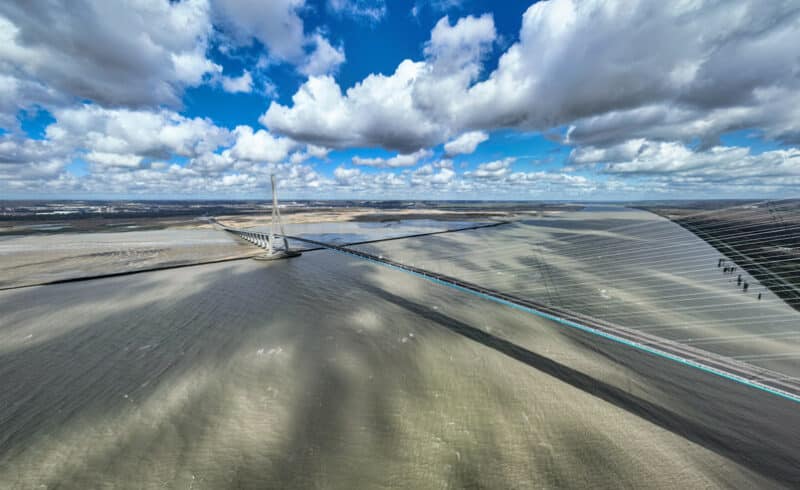 En l’occurrence, les contraintes naturelles sont de taille ! Les berges de la Seine sont marécageuses, sans possibilité d’ancrage naturel. Il faut compter avec des vents violents à 180 km/h, avec les marées, les forts courants, l’eau de mer, et aussi avec une navigation fluviale très dense. Parmi les solutions envisagées : la création d’un îlot artificiel pour ancrer l’un des pylônes. Une idée jugée trop impactante pour l’écosystème (et la navigation), et vite abandonnée au profit d’un pont à haubans avec une longue travée centrale et deux pylônes en Y inversé pour mieux résister aux vents.