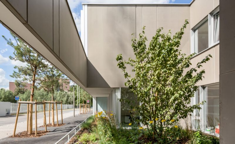 Associées pour l’occasion, les agences d’architecture Richter et Aubry Lieutier signent ensemble le plan-masse avant de se partager les opérations. Malgré une implantation périphérique, le nouvel édifice joue un rôle fédérateur et structurant à l’échelle du quartier.