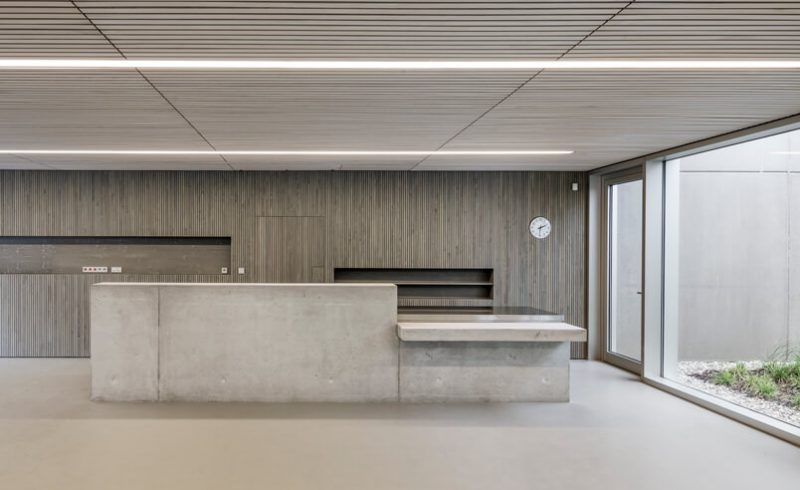 Le caractère “robuste” et durable attendu par le maître d’ouvrage s’est transformé en une quête de permanence grâce à un choix minimaliste de matériaux et de teintes : prémurs en béton brut à l’extérieur et à l’intérieur, auxquels s’ajoute la chaleur rassurante du bois à l’intérieur.